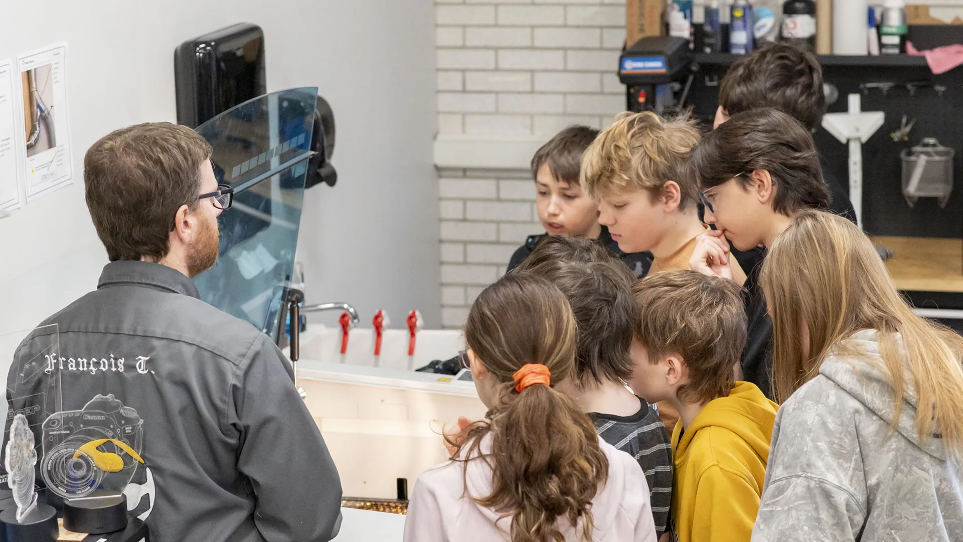 Ce parcours de découvertes technologiques a débuté par une visite personnalisée du Fablab, dont les imprimantes 3D ont définitivement marqué certains esprits. « Moi, c’est l’atelier que j’ai préféré! », s’est enthousiasmé par exemple un élève à la fin de sa sortie de classe, en brandissant un petit souvenir confectionné durant l’activité. François Truchon, le Fab manager, n’aura pas chômé pour illustrer l’ampleur du potentiel créatif de son laboratoire de fabrication numérique. Pendant près d’une heure, il aura brossé le portrait des principales machines disponibles et expliqué la mission du Fablab. Il aura présenté aussi un panel varié de prototypes originaux créés sur place, et répondu aux questions intéressées des enfants.