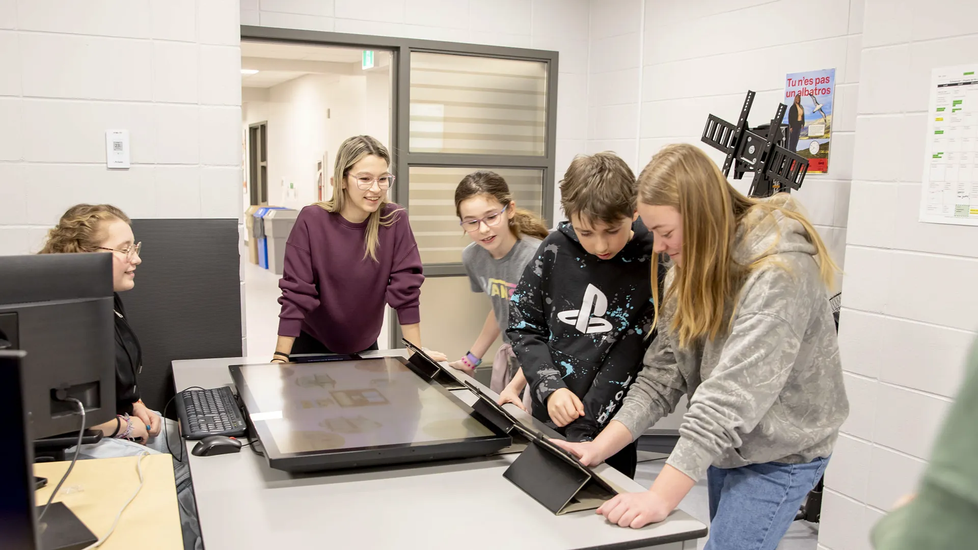 Par la suite, les élèves ont découvert les nombreuses étapes et l’ampleur du travail derrière la création d’un court-métrage d’animation. L’occasion, pour le groupe, de s’immerger dans le film réalisé en 2025 par la cohorte finissante du programme Animation 3D et synthèse d’images. Leur journée d’exploration a également compris une visite de l’ALT Numérique Desjardins. Là, les enfants ont eu droit à une initiation à l’intelligence artificielle, à une sensibilisation à la sécurité en ligne et aux dangers d’Internet, ainsi qu’à une rencontre avec des acteurs du milieu numérique comme le CDRIN, Cube Noir et Progik.