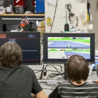 L’exploration de deux autres formations techniques offertes au cégep a aussi figuré au programme de la journée : Informatique et Création numérique. À cette occasion, les ateliers donnés aux enfants ont consisté à essayer des jeux vidéo créés par la population étudiante dans le cadre de leur parcours. Bénéficier d’un public testeur aussi jeune a ainsi permis d’ajuster en direct certaines configurations informatiques, de corriger quelques bogues, mais surtout de profiter d’une récompense irremplaçable pour toutes les heures passées sur son travail : assister aux réactions spontanées des enfants, qui ont testé les projets avec entrain, passion et plusieurs éclats de rire.