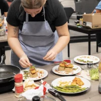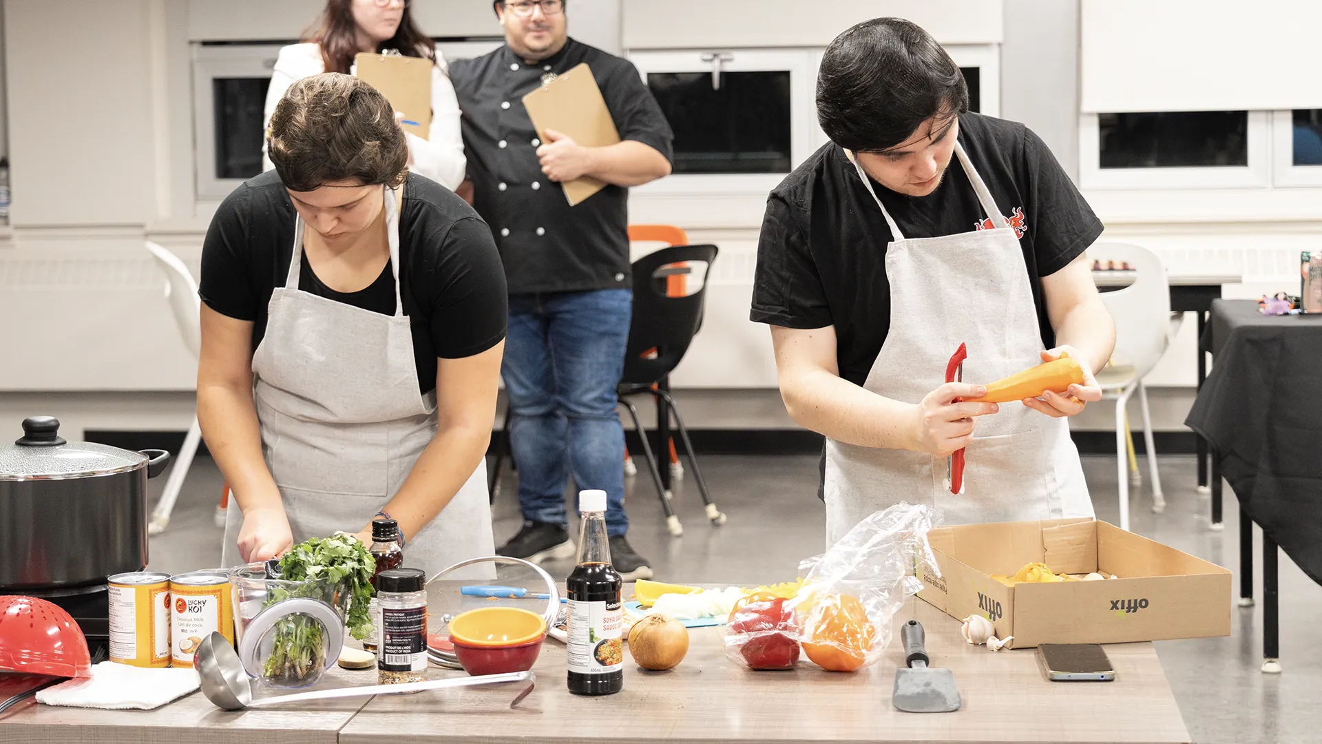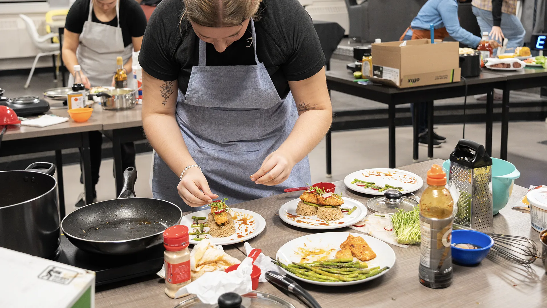Cinq équipes ont pris part à cette première finale locale, dont deux constituées d’un binôme. Chacun des groupes a reçu un budget de 60 $ d’épicerie. Par la suite, le défi a consisté à cuisiner, pour trois portions, une recette en une heure de temps. L’activité a eu lieu dans une ambiance conviviale devant près d’une trentaine de personnes. Le public a d’ailleurs eu la chance de pouvoir aussi goûter aux cinq plats préparés. Riz basmati au thé noir, cordon bleu, saumon au lait de coco, mijoté automnal : la population étudiante a pris plaisir à illustrer ses talents gastronomiques, sous les encouragements nourris du public.