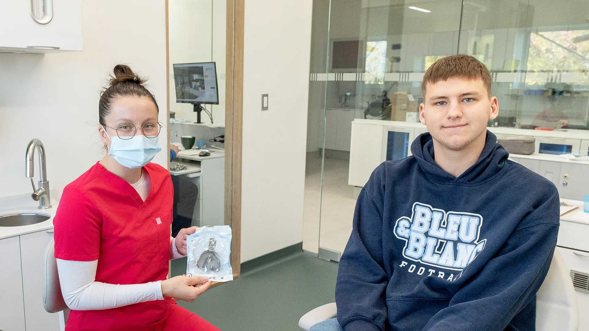 Le 10 octobre, la cohorte finissante du programme Techniques d’hygiène dentaire a eu la joie de recevoir la visite de 16 jeunes d’équipes sportives de Matane. Le groupe, composé de membres de Hockey Matane et de l’équipe de football du Bleu&Blanc, a eu la chance de bénéficier de la confection gratuite de protecteurs buccaux. L’activité faisait partie du stage d’approfondissement de dernière année. Elle a eu lieu dans la clinique-école en hygiène dentaire flambant neuve du Cégep de Matane.